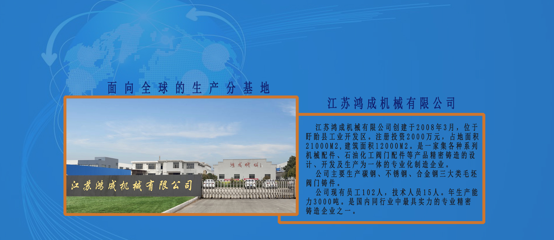 鄞州鴻成機械有限公司通過全體員工的團結(jié)奮進、頑強拼搏,發(fā)展迅速,公司占地面積7200平方米,已有員工180余人,擁有各類專業(yè)技術(shù)人員。專業(yè)生產(chǎn)各類普碳鋼、合金鋼、不銹鋼、精密鑄造產(chǎn)品廣泛用于冶金、礦山、石油、化工、鐵路、船舶、車輛等機械制造行業(yè)年產(chǎn)精鑄件2500噸以上。